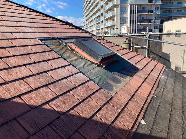 築年数の経過により、屋根全体の防水性能が低下していた住宅で、屋根の補修と同時に天窓の交換工事を行いました。